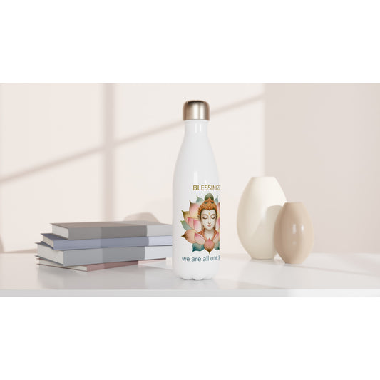 DIVINE BLESSINGS ∞ Weiße Edelstahl-Wasserflasche (ca. 500 ml, 17oz )