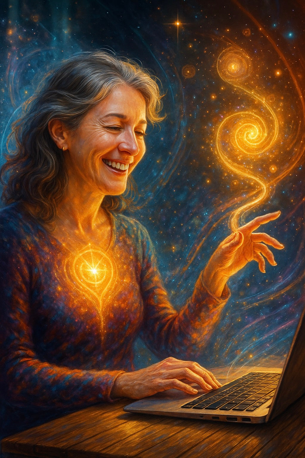 Du lernst, kreative, künstlerische und spirituelle Anwendungen von KI in Einklang mit deinem Inneren zu bringen – leicht, spielerisch und bewusst.